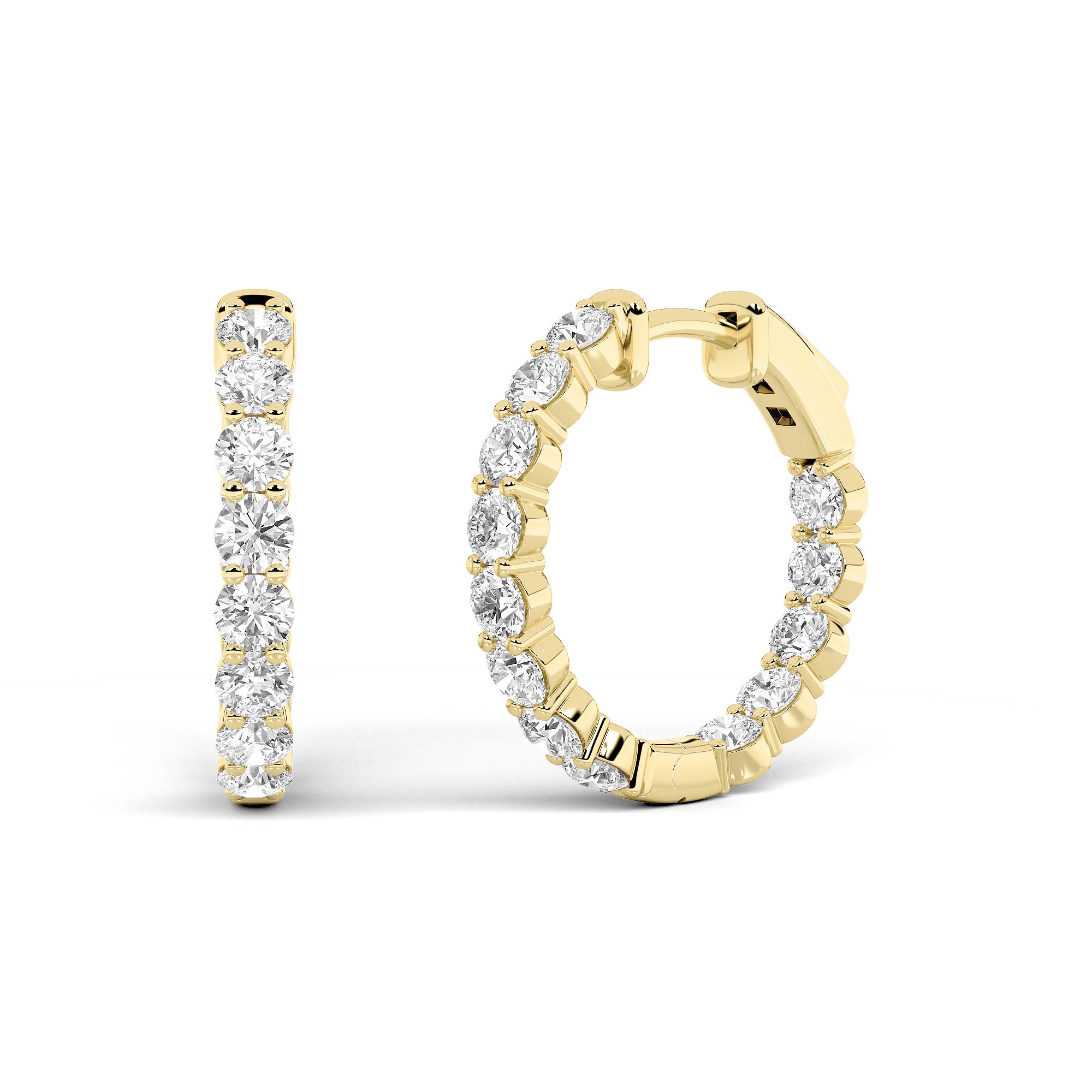 A brilliant round-cut lab-grown diamond rendered in rich 14K yellow gold. Coveted F color and VS clarity — remarkable light performance.