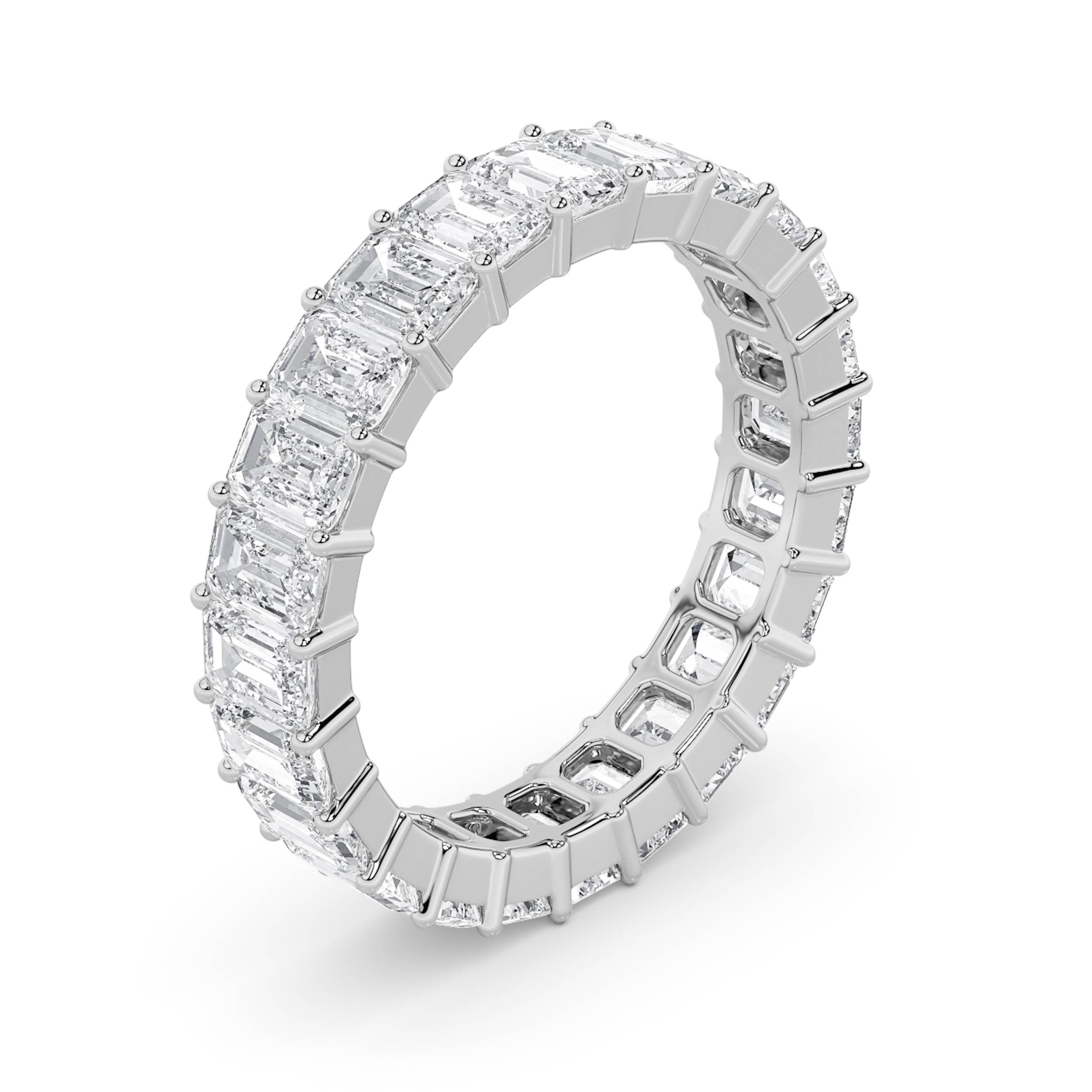 2.9Cttw Emerald Shaped Lab Grown Diamond ( F / VS ) Eternity Band set in 14K White Gold
